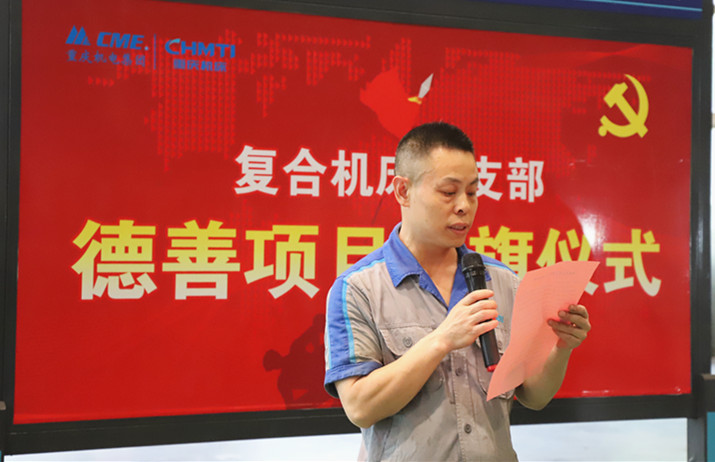 为激发党员和职工群众在生产组织、工艺保障、物资供应等重点环节中的攻坚热情,坚决打赢德善项目交付战,7月12日在复合机床事业部生产现场举行了德善项目党员突击队授旗仪式。机床集团党委书记、董事长刘德永、总经理衡德超亲临现场,党委副书记、纪委书记周玉红主持,复合机床党支部书记梅镇及全体党员、职工参加了授旗仪式。