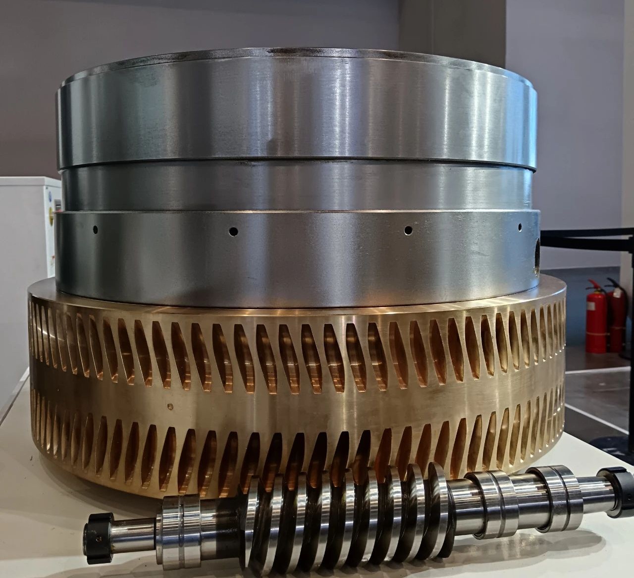 高精度蜗轮蜗杆副:自主开发的高精度蜗轮蜗杆副,精度达国标(GB/T10089-2018)3~4 级,是新能源装备乐动在线登录核心传动部件,具备逆向消隙功能,传动平稳,高承载力,在船舶、风电、工程机械、新能源装备乐动在线登录和精密分度转台中得到广泛应用。