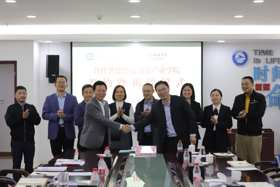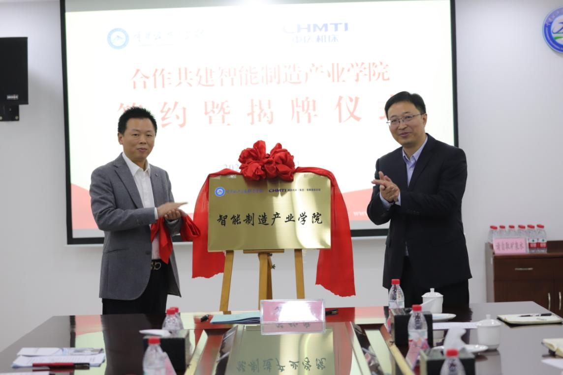 公司党委副书记、总经理衡德超与学校党委副书记、董事长张东旭代表双方签订“合作共建智能制造产业学院协议”并为智能制造产业学院揭牌。